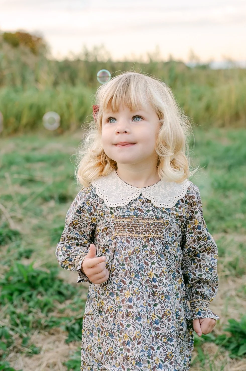 Limit patterns to one or two family members, and keep them timeless—like soft florals, gingham, or light plaid. Ensure the patterns don’t compete with each other or overpower the scene.